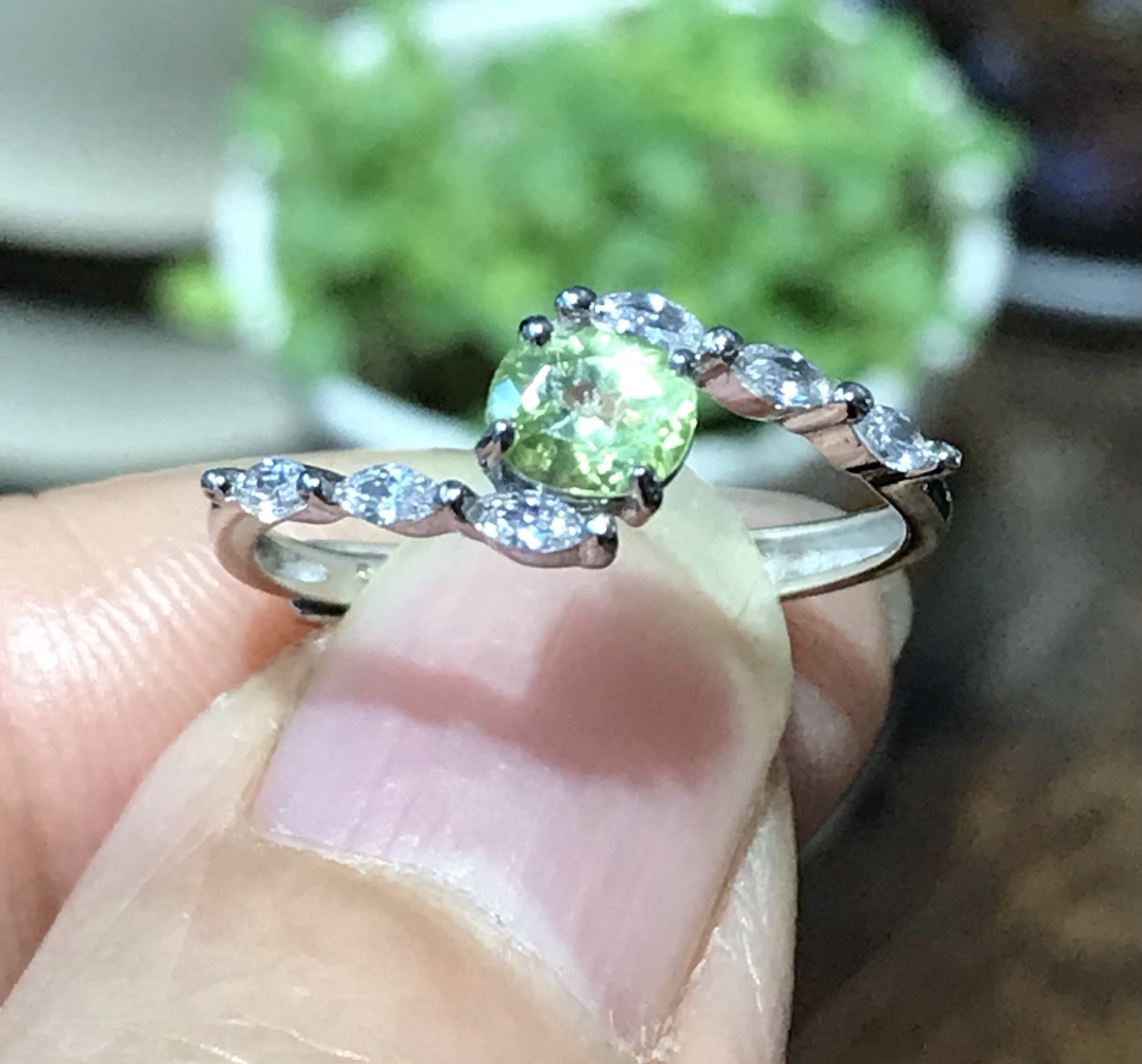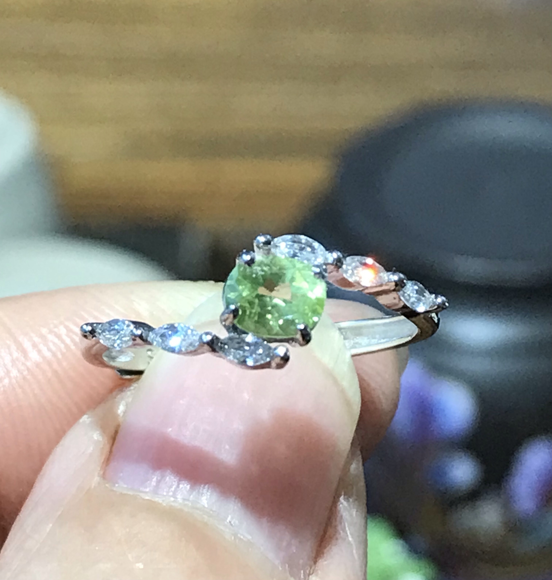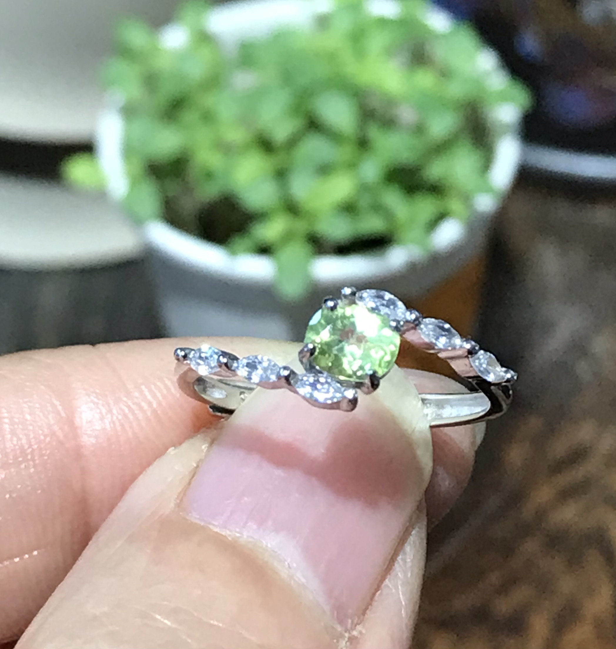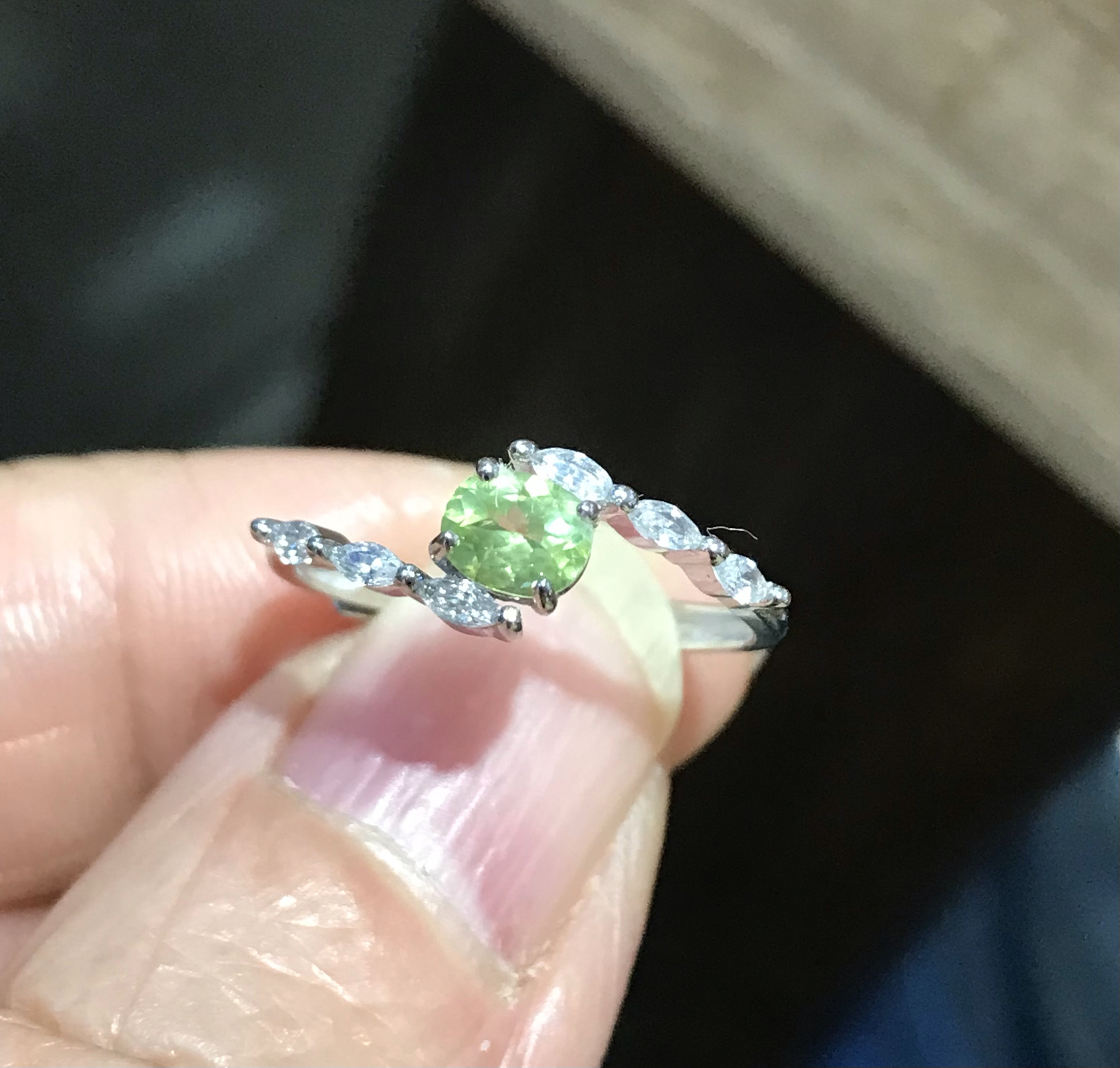 单件清仓925银镀白金天然橄榄石戒指女小众设计感高级轻奢精致