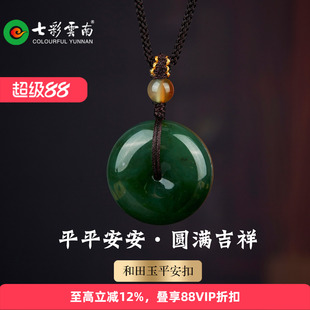 七彩云南天然和田玉碧玉平安扣国风吊坠男女款玉石挂件精品颈饰