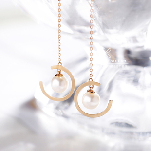 凯美珠宝正品18k彩玫瑰金黄金天然淡水珍珠耳线长款简约流苏日本