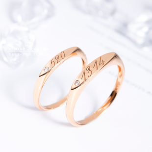 凯美珠宝原创自由刻字外圈刻字18k白玫瑰彩金男女情侣对戒指一对