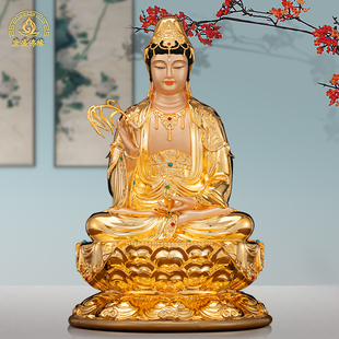 南海观世音菩萨佛像摆件纯铜著金家用供奉大慈大悲观世音坐像佛具