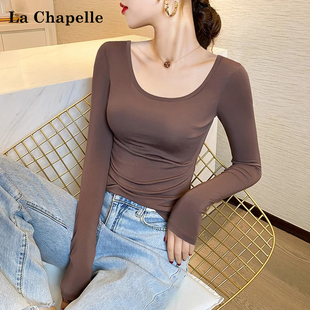 拉夏贝尔莫代尔U领打底衫女内搭2026春秋冬新款加绒保暖长袖上衣