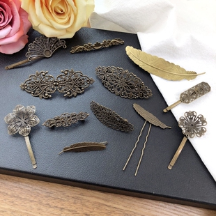 森系复古发夹古铜色鸭嘴夹蝴蝶花朵盘发边夹顶夹古风抓夹夹子头饰