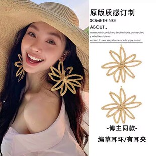 易梦玲同款编织大花朵耳环女海边度假风夸张显脸小耳饰波西米亚