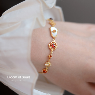 《琳琅丝路》原创设计纯银多宝手链石榴石贝母法式女复古轻奢精致