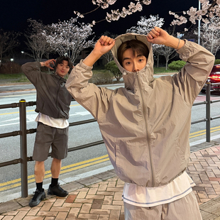 ANAN韩国东大门代购强推春夏时尚轻薄休闲连帽尼龙夹克沙滩短裤男