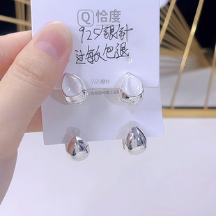 冰透水润水滴耳钉女s925银针小众设计感独特气质耳环2024年新款潮