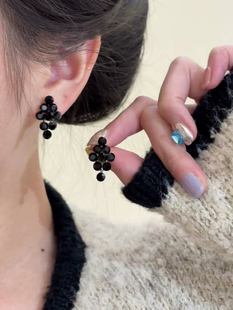 黑色水钻菱形耳钉925银针耳环简约冷淡风2024新款洋气网红爆款女