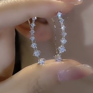 小众设计一排式锆石耳环925银针防过敏韩版轻奢简约百搭爆款耳饰