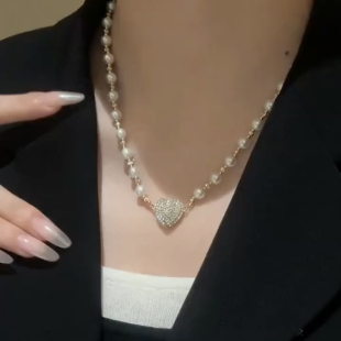 高级感镶钻爱心磁吸心形吊坠珍珠项链轻奢小众设计百搭气质锁骨链