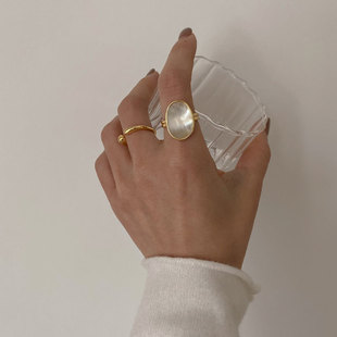 欧美时尚椭圆开口贝壳戒指女复古高级感指环个性食指戒跨境手饰戒